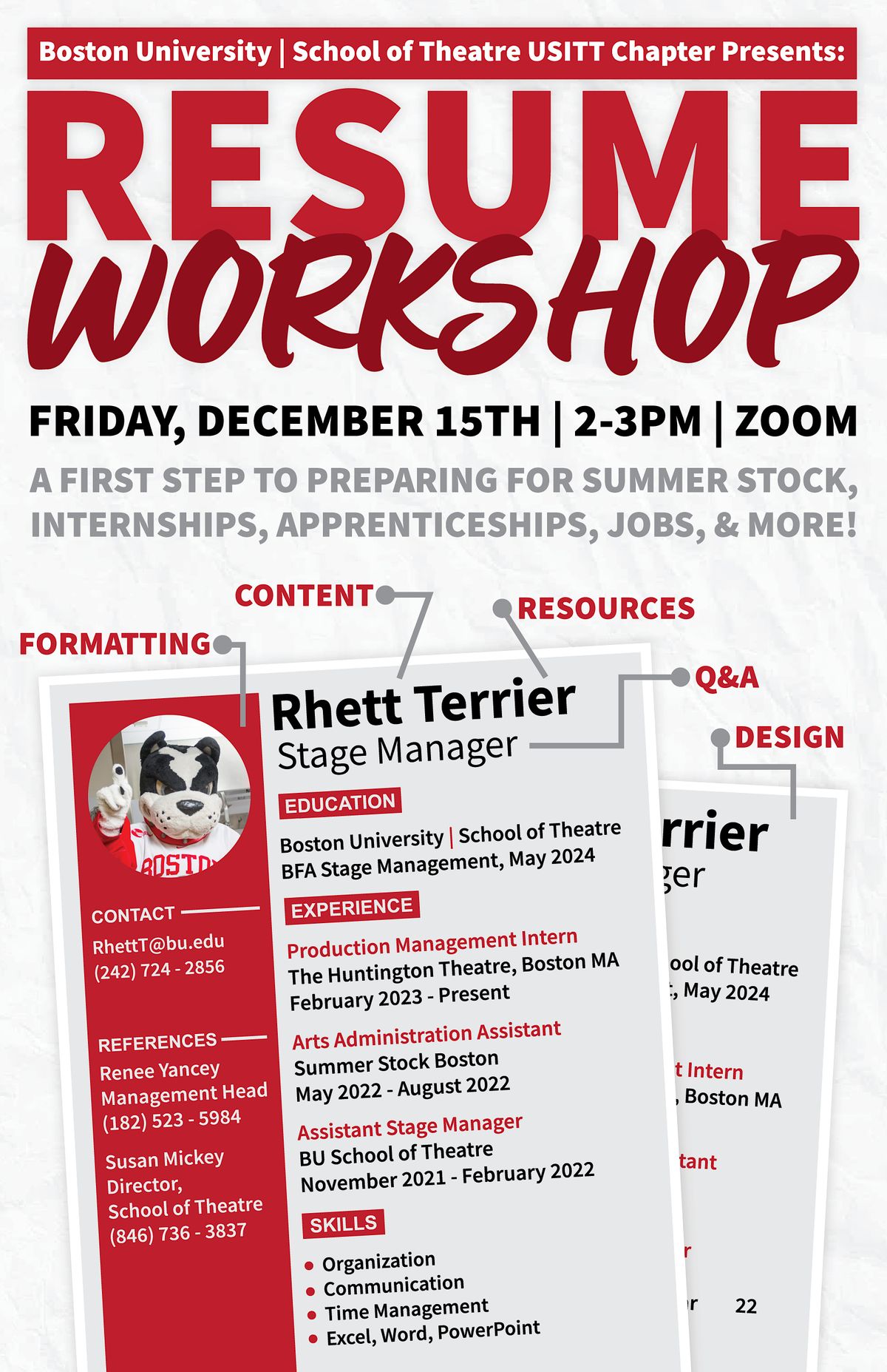 Source : www.bardstowntheatricals.comUSITT Presents: Resume Workshop, December 15 2023 | Online Event